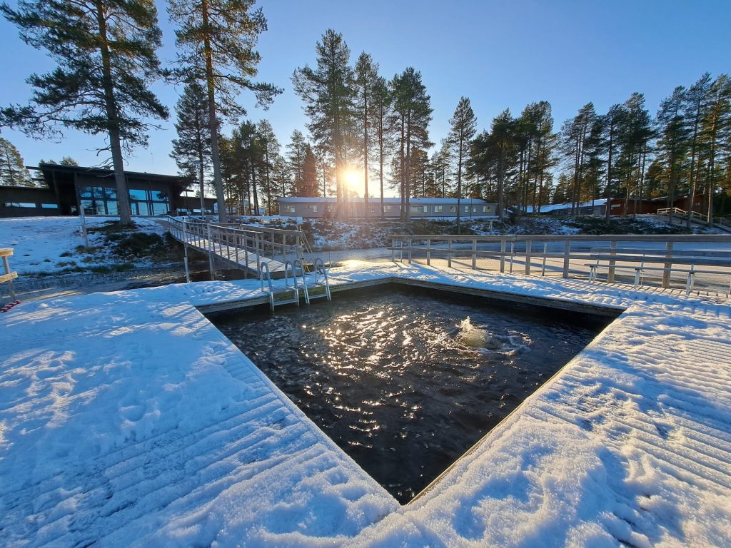 Joutsen building houses very cozy and spacious saunas. You can relax on the terrace or take a swim all year round.